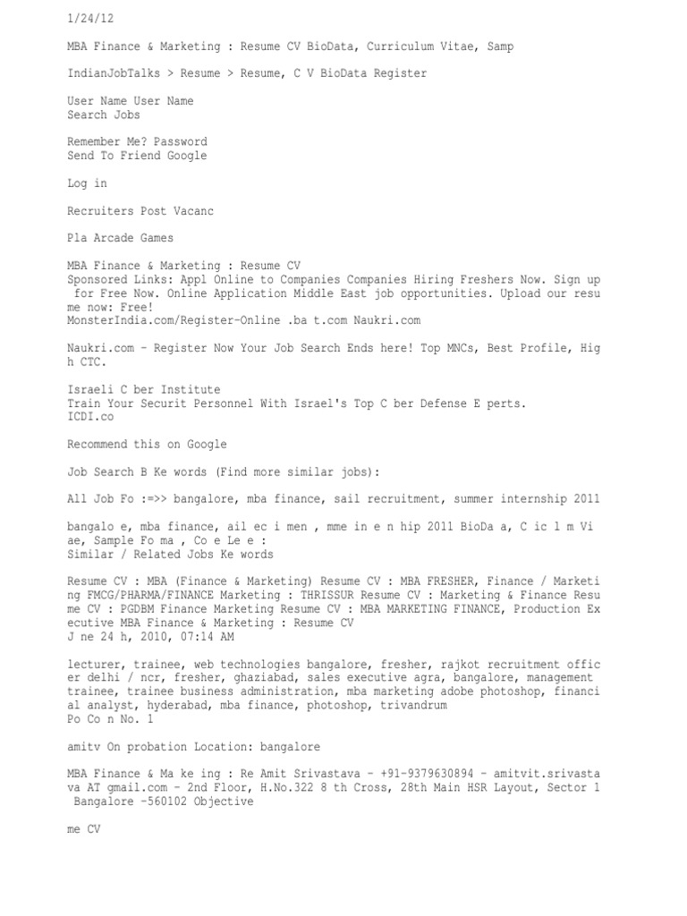 123 Resume Txt Master Of Business Administration Competence Human Resources - Looking for monsterindia com login?